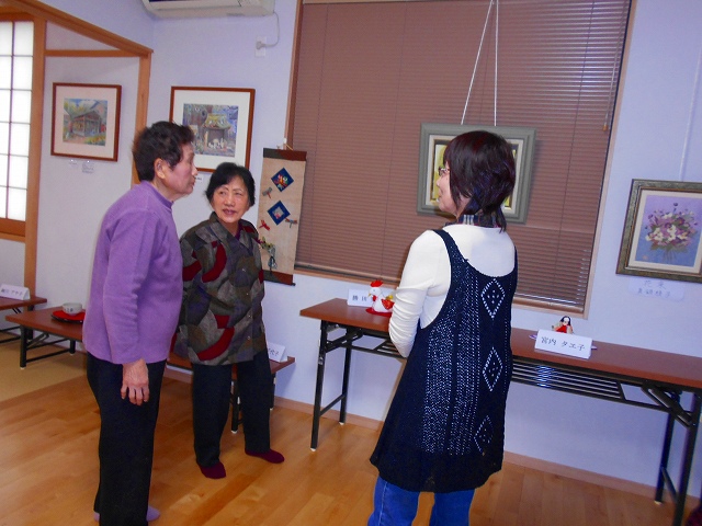 自治会員の作品展 -最近の投稿 2017.10.29 27日(金)午後から作品展示の会場準備、28日(土)29日(日)は展示会。 28日午前中は芋煮の準備、来場者にふるまって、和やかな雰囲気で談笑。 29日(日)は城坤秋祭りで獅子舞をした青年たちにも、芋煮を食べてもらいました。